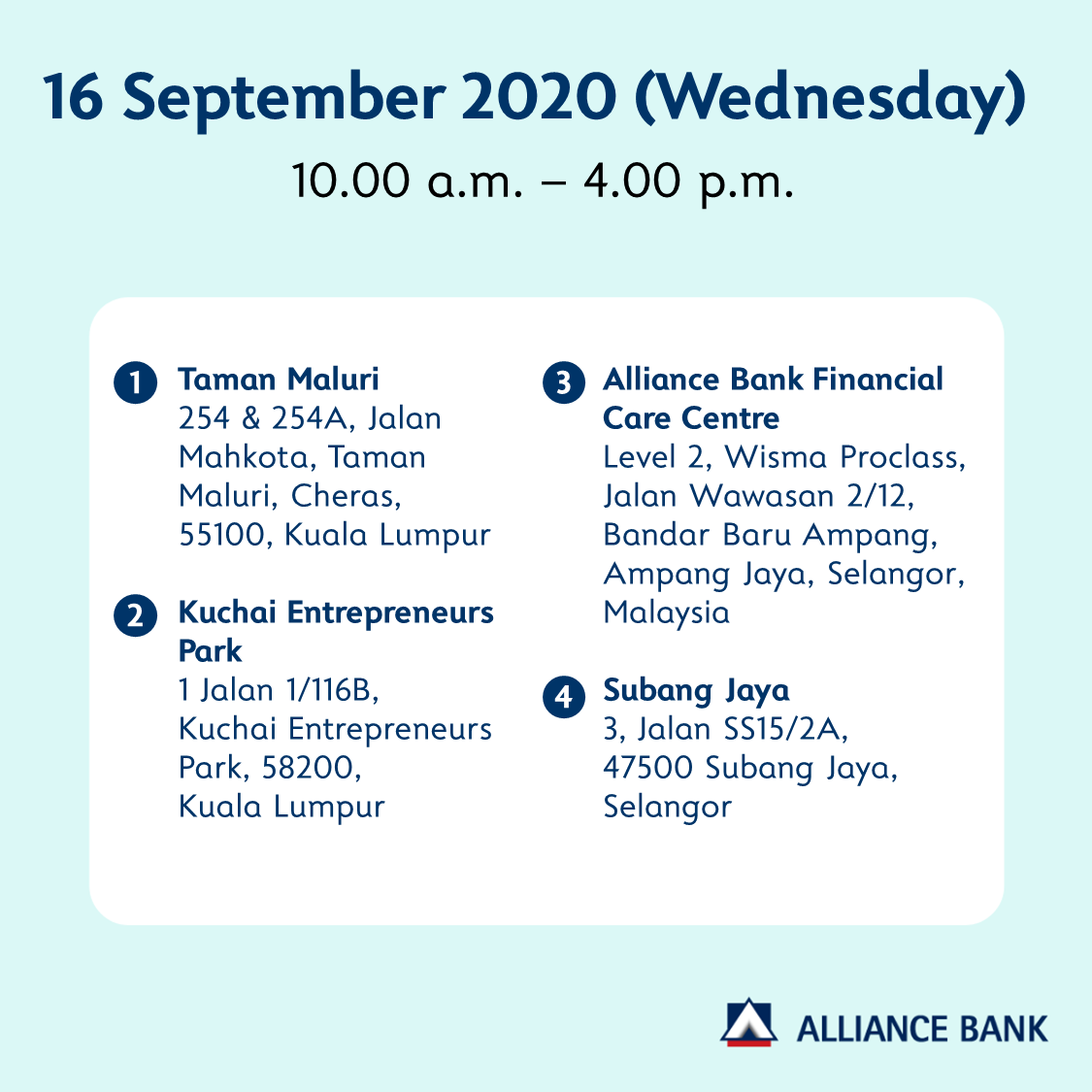 Updated for Winners Announcement for Up to RM80 Cashback and Win a Folding Bike Debit Card-i Promotion. 3 Alliance 3 Jalan SS152A 47500 Subang Jaya Selangor. Alliance bank subang jaya Thursday November 25 2021 Edit.